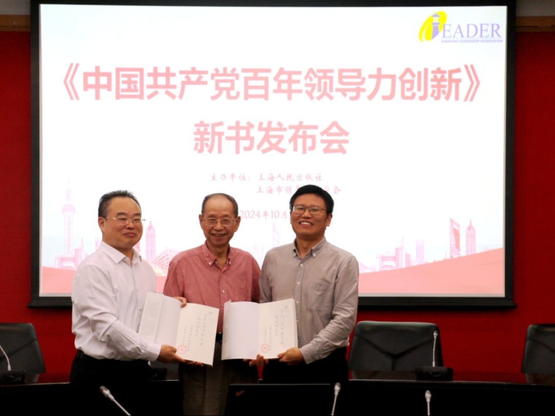 10月26日上午,由上海市领导科学学会和上海人民出版社共同主办的《中国共产党百年领导力创新》新书发布会在中共上海市委党校举行。上海市领导科学学会创始会长、中国浦东干部学院首任常务副院长奚洁人,中共上海市委党史研究室主任严爱云,上海市领导科学学会会长、上海应用技术大学党委书记郭庆松,上海立信会计金融学院党委书记、上海科学社会主义学会会长解超,中国浦东干部学院原副院长、中国领导科学研究会学术委员刘靖北,解放日报原党委副书记、上海社会科学普及研究会会长周智强,上海人民出版社党委书记、社长温泽远出席。发布会由上海市领导科学学会副会长、上海市社会科学界联合会原党组成员、二级巡视员陈麟辉主持。