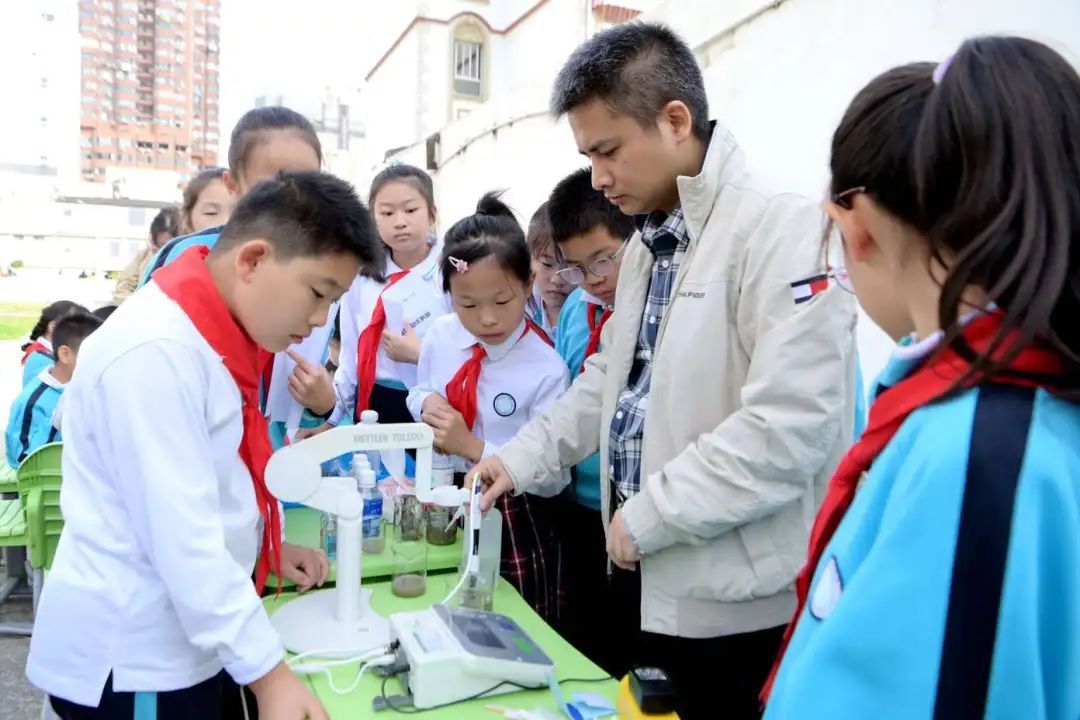 现场,数学老师在课堂里和同学们一起化身心愿统计师,尝试以条形统计图为工具,决定“心愿农场”里下一次种植的蔬菜品种;自然科学老师邀请孩子们当一回稻田检测员,利用仪器检测学校稻田的pH值是否达标;语文老师引导学生为本次下田实践活动作诗一首;体育老师带领大家举行有趣的“稻草人射箭比赛”;此外,还鼓励所有学生自主设计吉祥物和学校稻田伴手礼的礼品盒……