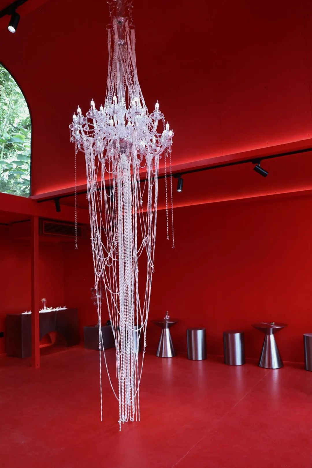 水晶吊灯垂挂着珍珠链条