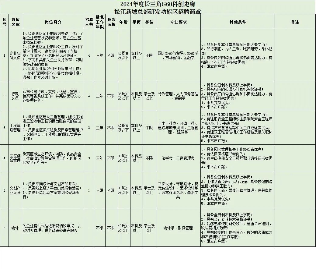 1、2024年度长三角G60科创走廊松江新城总部研发功能区招聘简章