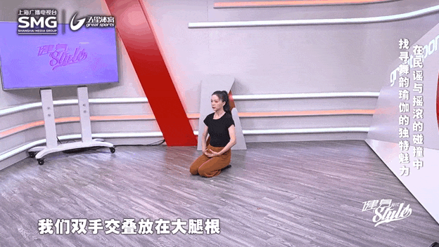 收核心回雷电坐,双手两侧展开再从头顶包回,双膝抬离地板;