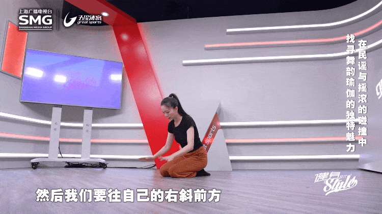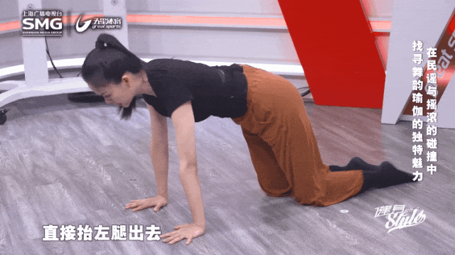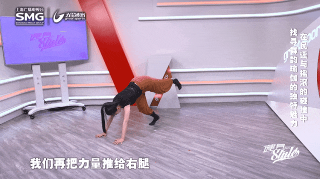 左臂绕头,双腿系带式,双臂甩向左侧,左脚蹬地,右左手两次发力,身体反转方向保持在船式变体。