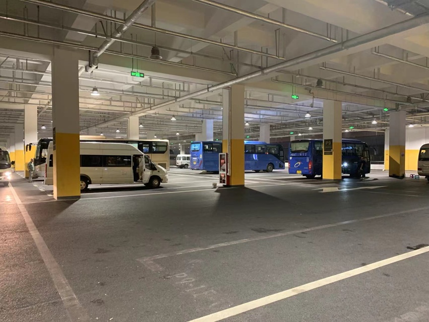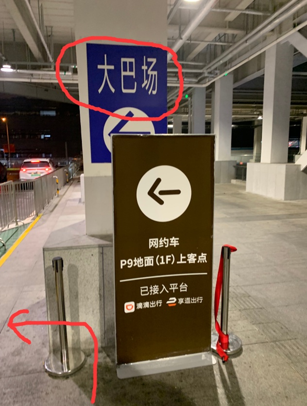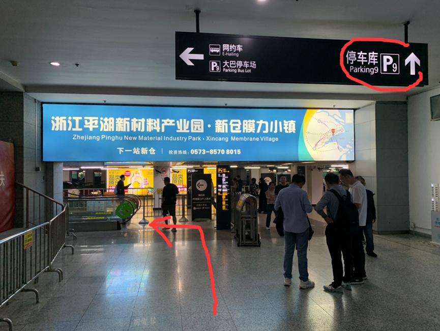 左转20米后,您将看到一个出口,这就抵达了虹桥站P9的1F大巴停车场。