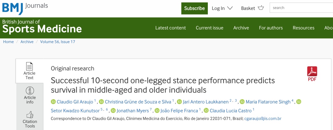 2022年9月一项发表在知名医学期刊《英国医学杂志》子刊上的研究证实:单脚站立稳定10秒的表现预测了中老年人的生存能力,证实了平衡能力与死亡风险之间存在相关性。平衡能力差的人,死亡风险可能会更高。