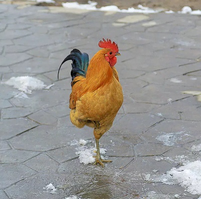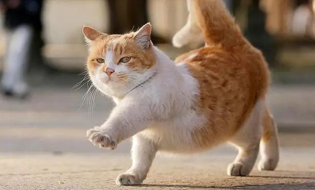 另一只踩在坚硬、平整的地面上,