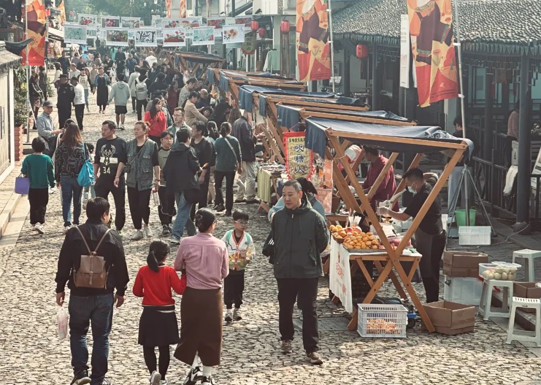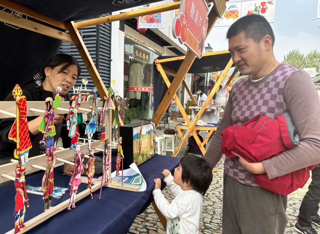 此外,为了增添老街的古朴韵味,集市还特别增设了吹糖人、皮影戏等非遗文化展示区。