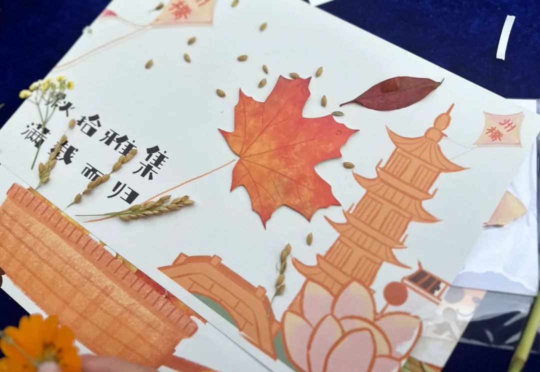 最为热闹的当属互动体验区,在州桥“捡秋”创意手作现场,参与者们纷纷用稻谷、红叶等自然素材制作落叶画,将秋天的美好定格在画布上。