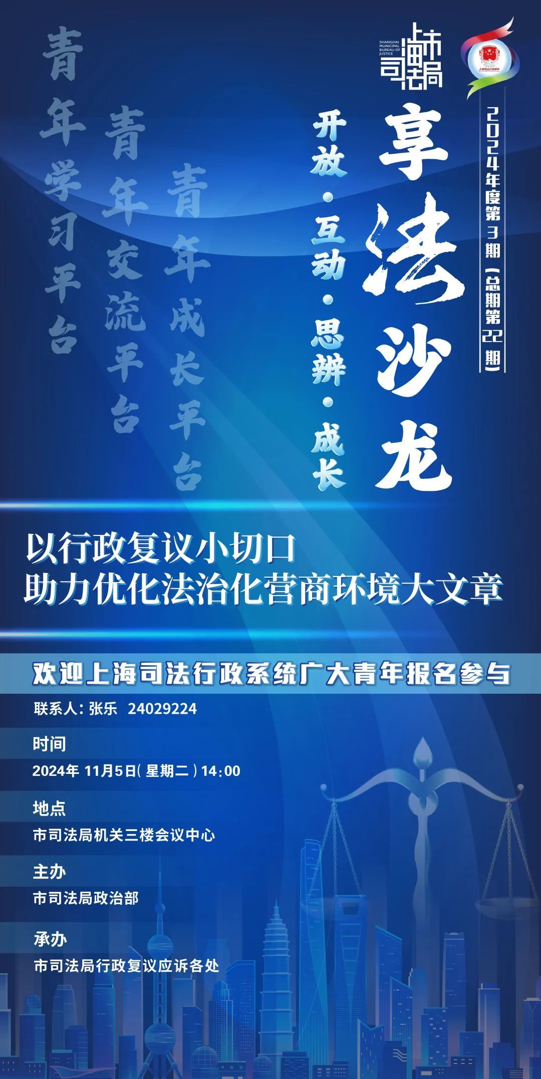 本次沙龙以行政复议监督涉企行政执法、保护经营主体合法权益为切口,进一步聚焦优化法治化营商环境。相关领域专家和司法行政青年将通过思想自由碰撞、观点充分表达、领域交叉互融等方式,为行政复议案件审理、行政执法案件办理等提供思路与启发。