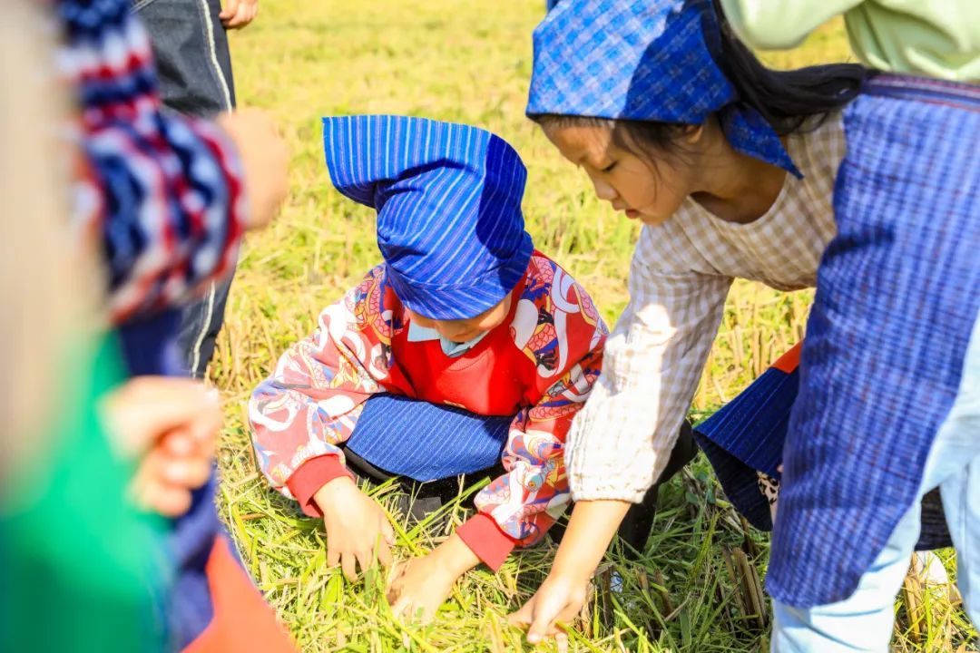 在农事专家的悉心讲解下,孩子们对稻谷的生长奥秘、收割的智慧以及粮食的珍贵性有了更为深入的了解。在金黄色的稻田里,他们身着土布装束,化身为小小农夫,亲手捡拾那些遗落的稻穗,每一粒都凝聚着辛勤与汗水,也见证了孩子们对自然的敬畏与感激。