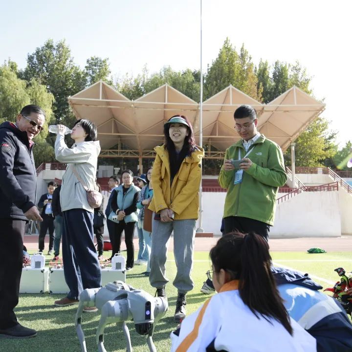 在教师的操作下,机器狗不仅可以精准地做出站立、坐下、仰卧、招手等动作,而且能利用头部激光雷达装置实现在快速奔跑中躲避障碍物等较有难度的挑战任务,让同学们都很是惊奇。遥控车也在草坪上实现越野飞坡,急停转向等精彩特技动作,同学们看了都跃跃欲试,纷纷报名尝试体验起来。