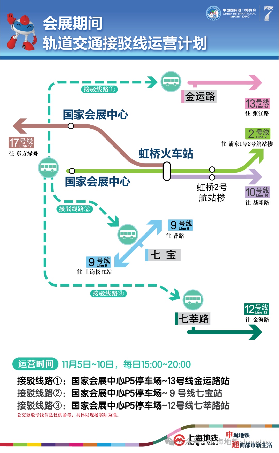 据悉,进口博览会期间,相关单位将专设3条轨道交通接驳线: