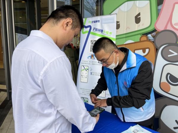 活动现场,工作人员热情地向过往市民讲解可回收物精细化分类的深远意义,展示“沪尚回收”小程序的主要功能,并现场演示了如何利用小程序轻松完成回收流程。