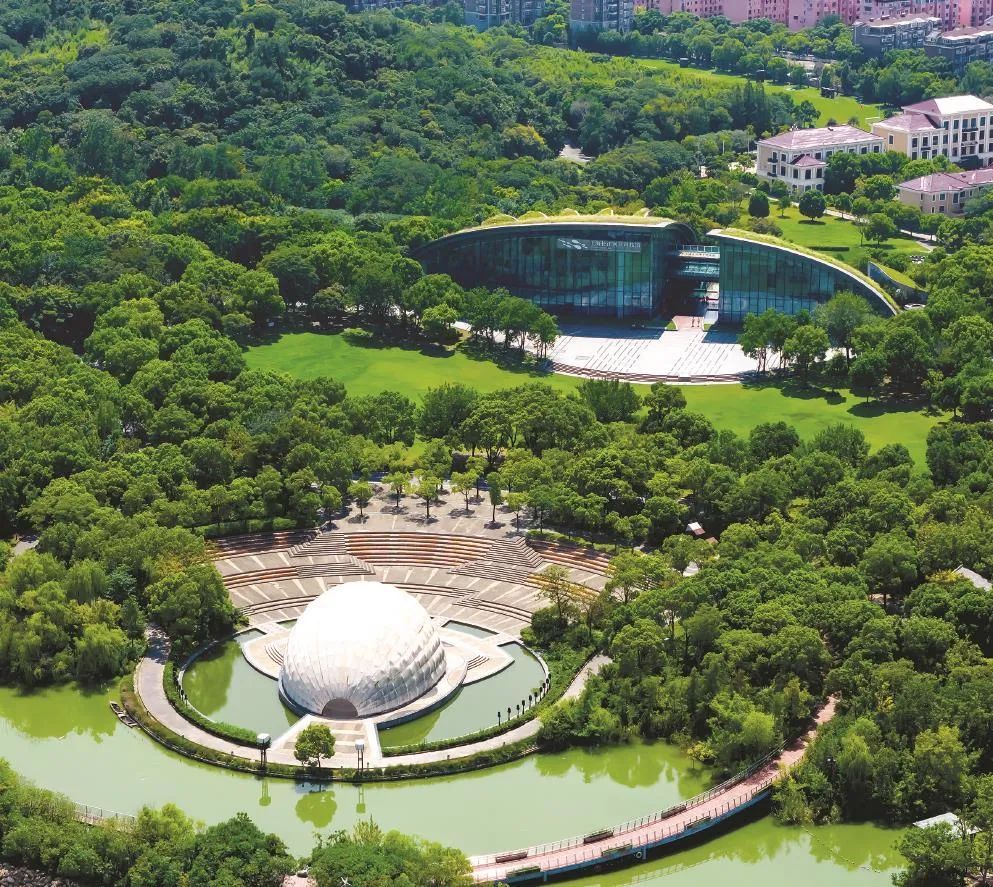 罗店镇美兰湖周边,绿意葱茏中嵌入了成片的居民区。万海民摄