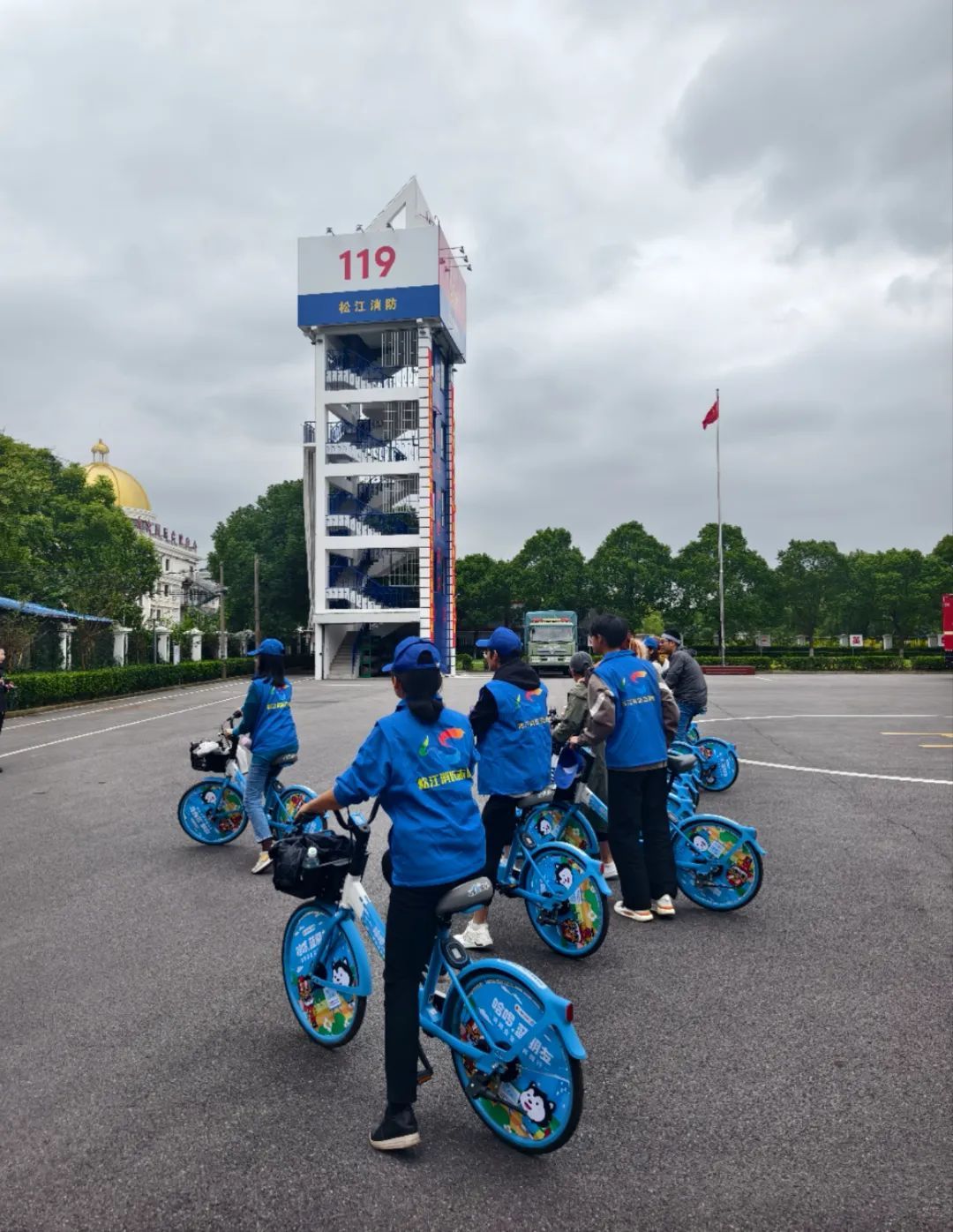 在119消防宣传月即将来临之际,松江区消防救援支队与哈啰出行共同举办了一场“哈啰,蓝朋友”系列消防志愿服务科普主题活动。通过邀请市民朋友骑上哈啰单车,跟“蓝朋友”一起骑行打卡消防救援站,并参加文创市集,通过沉浸式体验深入学习消防安全知识,让“消防安全”常驻心间。