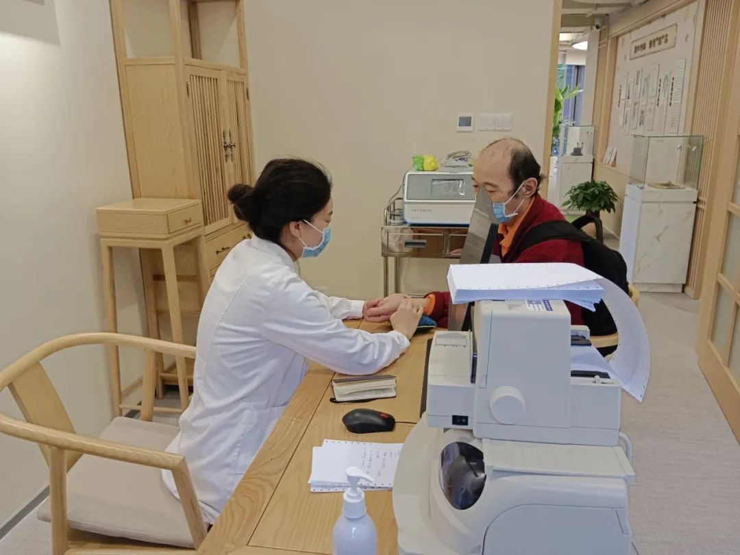 作为居民“家门口”的健康驿站,湖南街道社区卫生服务中心淮中社区卫生服务站不仅环境舒适、功能细分,流程优化,也处处彰显着中医元素。在医疗设备上,这里设有中医诊室1个、中医治疗室1个、中医特色治疗床位5张,并配有9类中医特色诊疗设备,包括中医体质辨识设备、电动可升降多体位治疗床、各类针灸针具等,可提供7类23项的中医药技术方法,满足各类中医诊疗服务的开展。