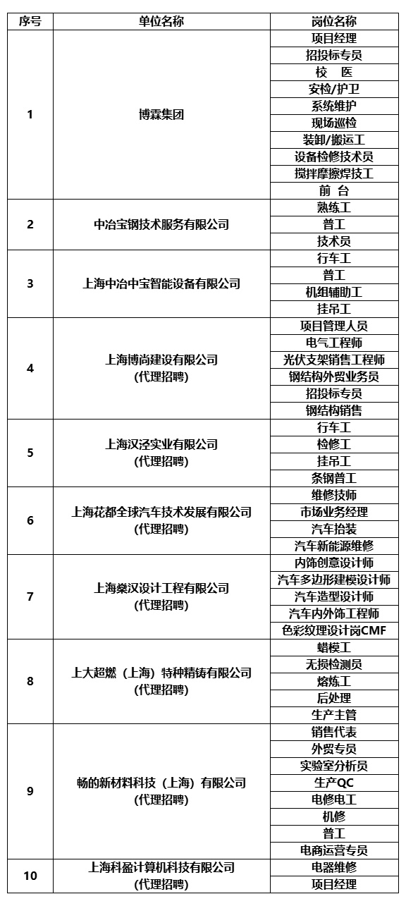 具体岗位情况以现场招聘会为准