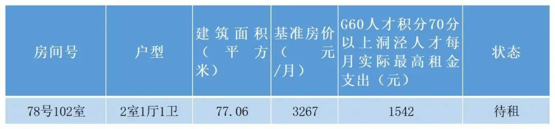 公租房型人才公寓,总52套,本月供应1套,G60人才积分50分以上人才可申请人才租房补贴。