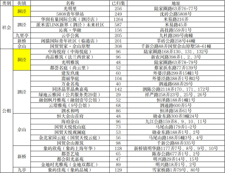 洞泾及周边街镇社会型和公租房型人才租赁房源