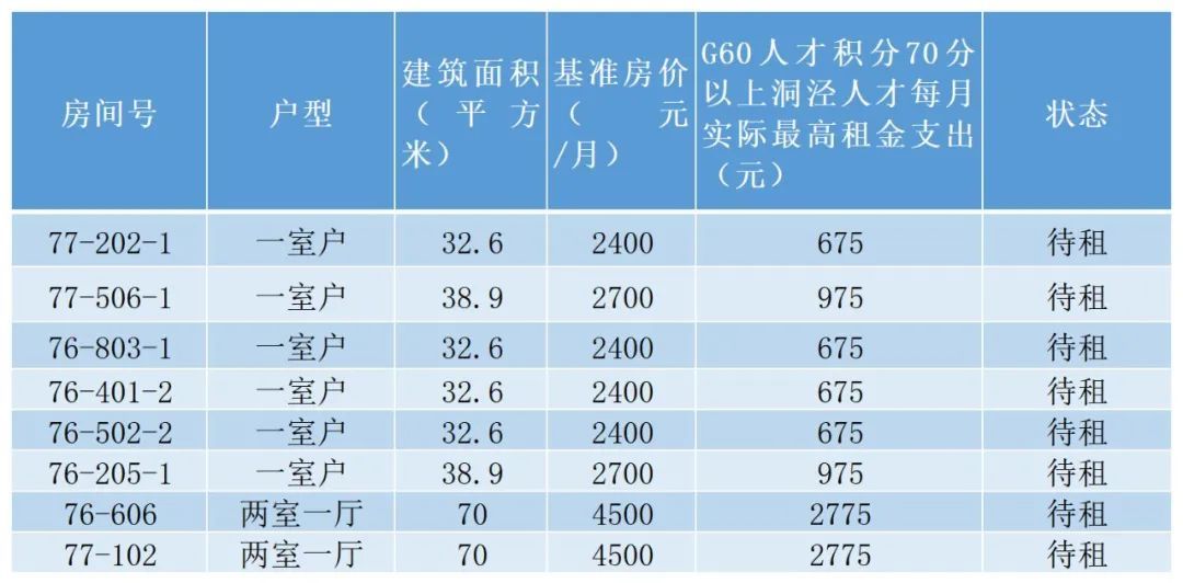 公租房型人才公寓,总96套,本月供应1套,G60人才积分50分以上人才可申请人才租房补贴。