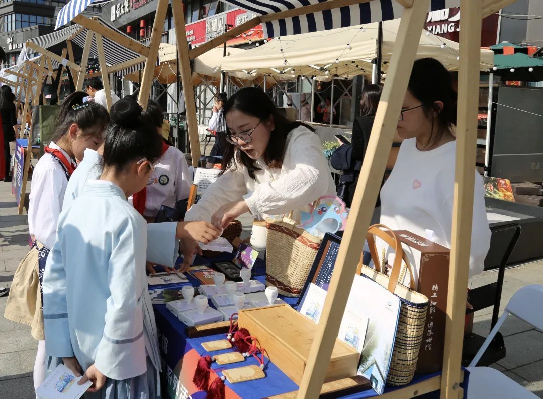 活动现场,20个摊位沿水岸广场道路两侧精心布置。一侧展示了徐行草编、嘉定竹刻、药斑布印染等“非遗在校园”活动的丰硕成果,另一侧则呈现了嘉定区文化馆、上海大来时间馆等文化艺术场馆“社会大美育”的精彩作品,让市民在步履之间尽览文化与艺术的交融之美。