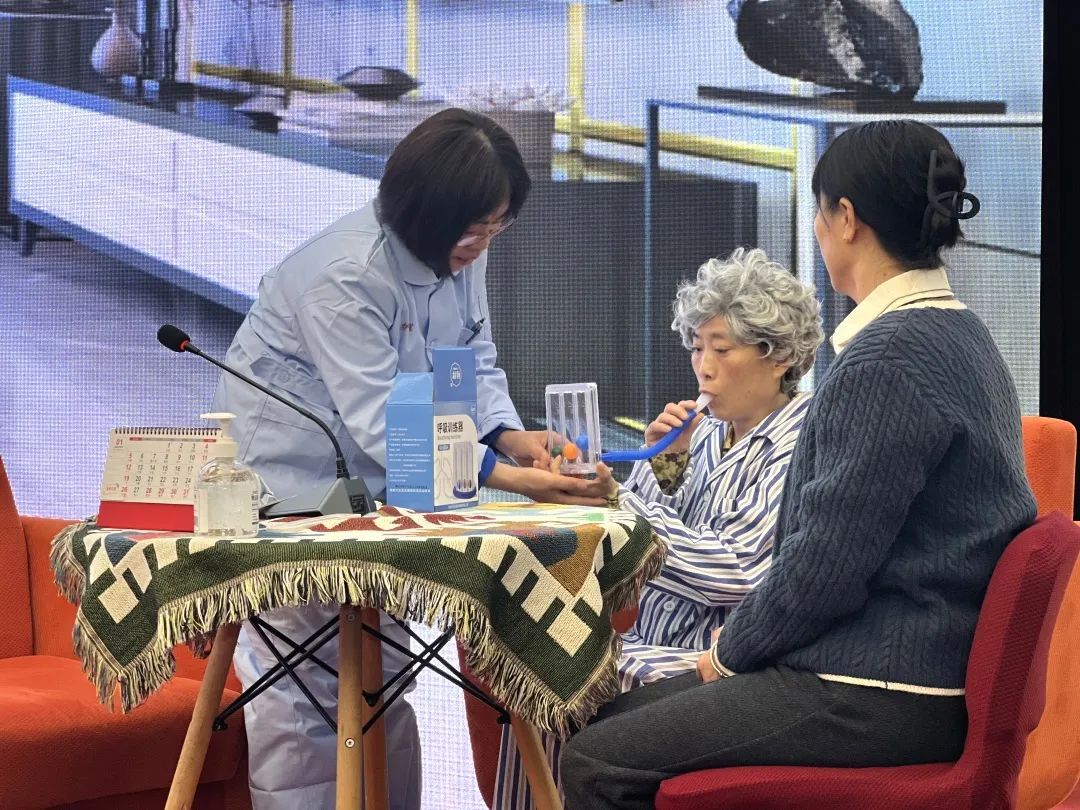“吸气的时候,慢慢地呼吸,心里默数两秒,一、二……”轻声细语,忙而不乱。在复赛舞台上,经验丰富的养老护理员们拼的是真功夫。复赛采用场景模拟考核的方式,选手化身上门服务的护理员小王,面对78岁、患有慢性阻塞性肺疾病的老人“李奶奶”,他们要进行心理安抚,并帮助尝试呼吸训练。腹式呼吸、缩唇呼吸训练、利用医用三球仪训练等,都是大家常用的方式。