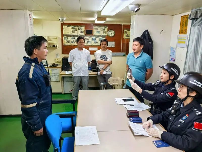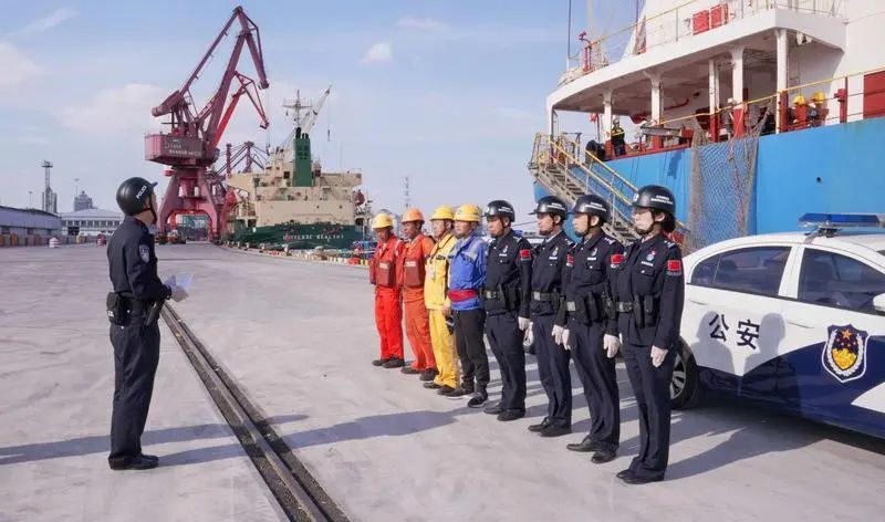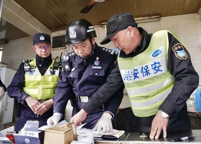 在辖区码头,执法小组对港区的防护围网、电子围栏、隔离设施等开展了全面隐患排查,对张华浜港区码头门卫履职、车辆及人员进出情况进行了抽查。期间,重点对某外籍货轮开展了联合登临检查,为全船船员实施人证对照及证件查验的同时,通力协作、共同排查了船舶甲板、机舱、生活区等重点部位,为全面发现和查处非法搭靠、偷渡走私等违规违法行为进行了实战练兵。