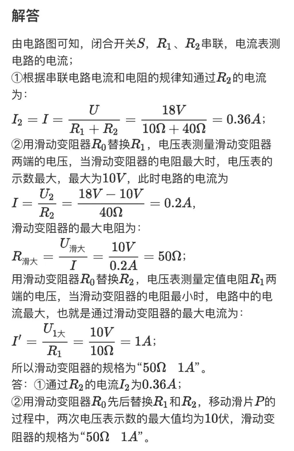 (2)用滑动变阻器R0先后替换R1和R2,移动滑片P的过程中,两次电压表示数的最大值均为10伏,请确定滑动变阻器的规格。