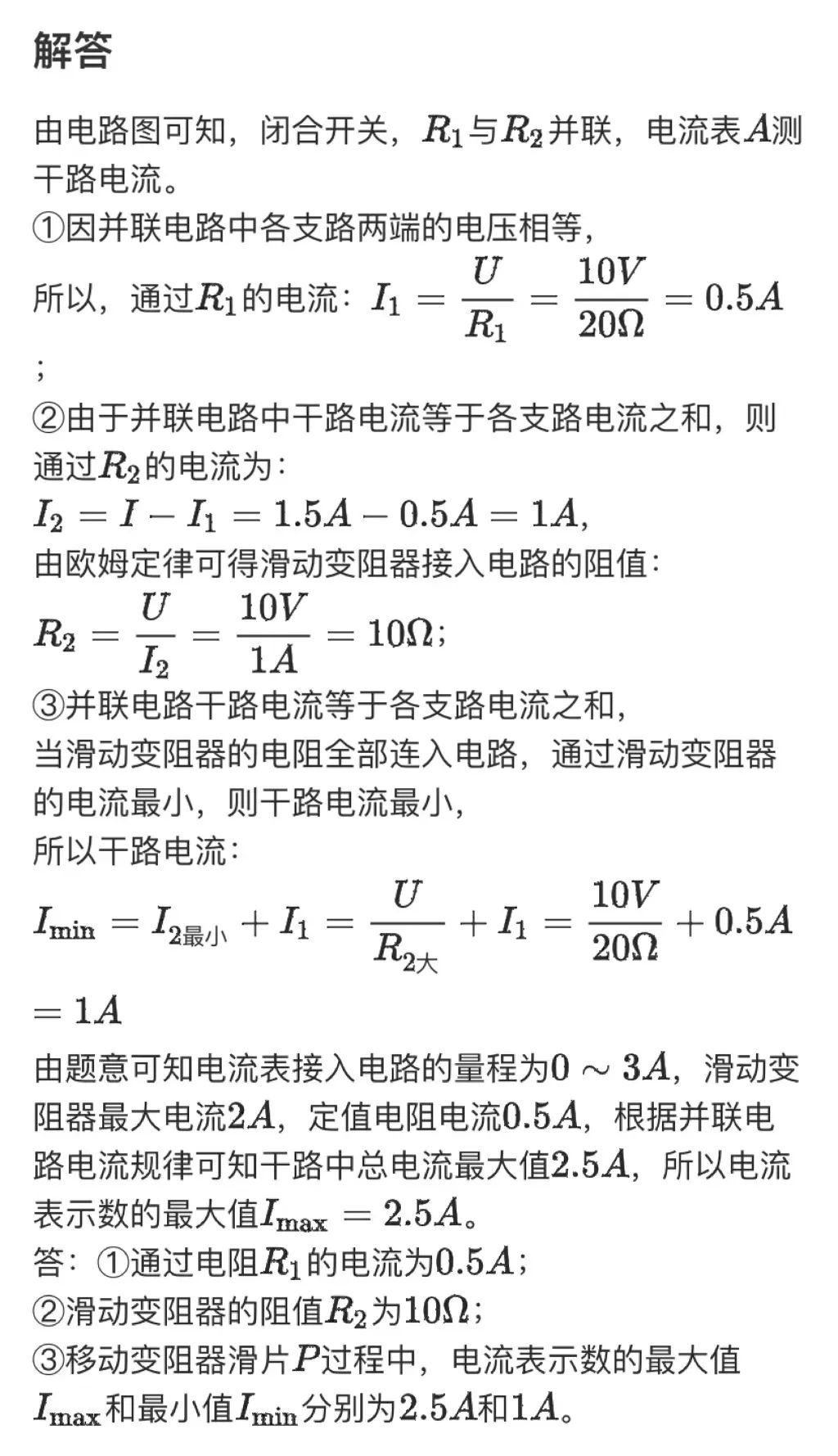 (3)移动滑动变阻器滑片P的过程中,电流表示数的最大值Imax和最小值Imin。