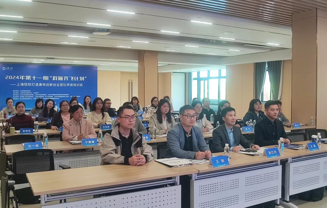 为深入贯彻党的二十大精神,积极响应2024年《政府工作报告》有关“优化就业创业指导服务”的部署,落实教育部《关于做好2024届全国普通高校毕业生就业创业工作的通知》的要求,提升院校高效创新创业教育教学与实践指导能力,由上海市教育委员会指导,上海市学生事务中心和上海大学联合主办,上海大学创新创业学院、上海大学创业指导站承办的2024年第十一期“群雁齐飞计划”——上海院校打造高效创新创业团队师资培训班于近日在上海大学举办。来自东华大学、上海师范大学等高校的近40位创新创业的教师及教学管理相关工作人员参加了此次培训。