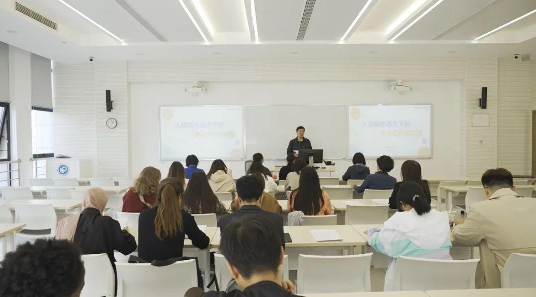 活动伊始,华东理工大学艺术设计与传媒学院副教授、参与式社区规划研究与实践中心主任安大地率先带来了一场精彩的 “人民城市治理下的参与式社区实践” 讲座。他以徐汇区凌云街道“全龄友好社区工作坊”、长宁区古北黄金城道“融·阡陌小筑”以及虹桥街道“rPET再生设计”等案例,深入浅出地阐述了“人民城市人民建” 理念如何在上海落地生根,让留学生对“人民城市”理念有了更直观的认识。
