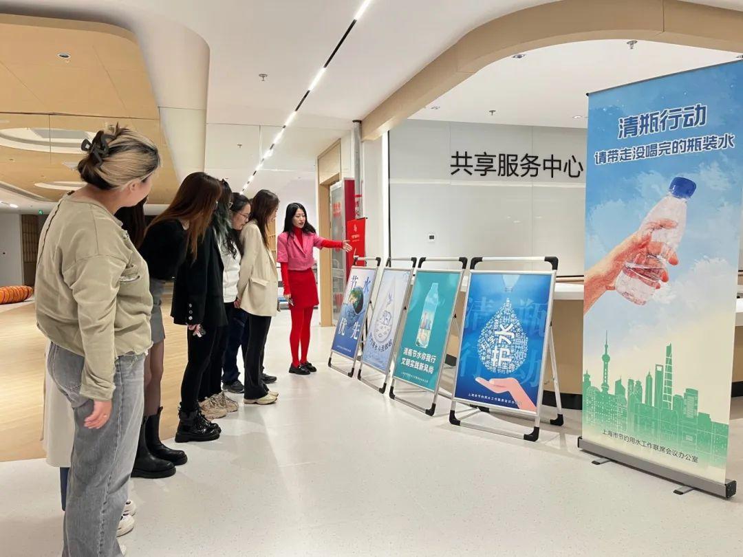 从上海漕河泾北杨人工智能小镇、网易上海西岸研发中心,到半导体企业、环贸iapm商场,徐汇区水务部门还深入各大园区、企业等地开展“清瓶行动”,将展板、易拉宝等宣传物料放置在餐厅、办公楼的主要出入口以及会议室门口等,有助于帮助企业职工在就餐、休息和开会的同时,学习到相关节水知识,探讨节水话题。