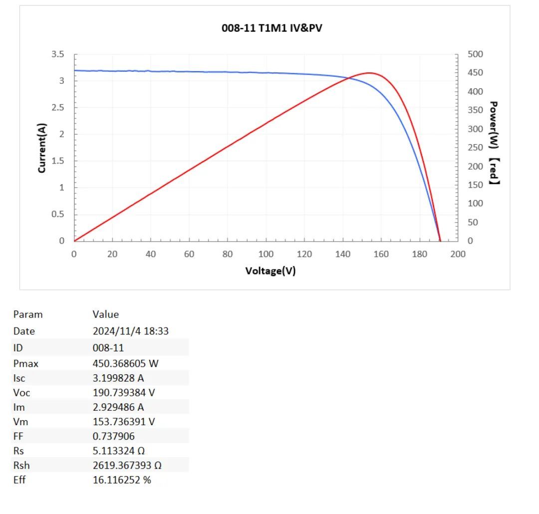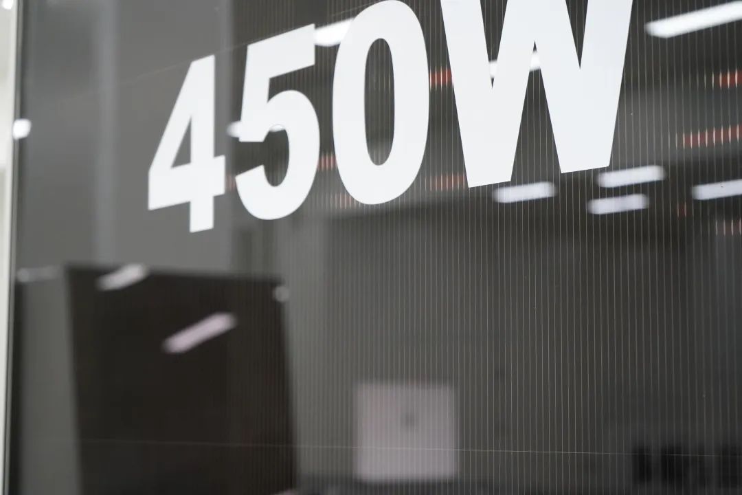 “这是极电光能生产出的首片超大面积组件。”极电光能副总裁王雪戈介绍,组件功率达到450W,全面积效率16.1%。