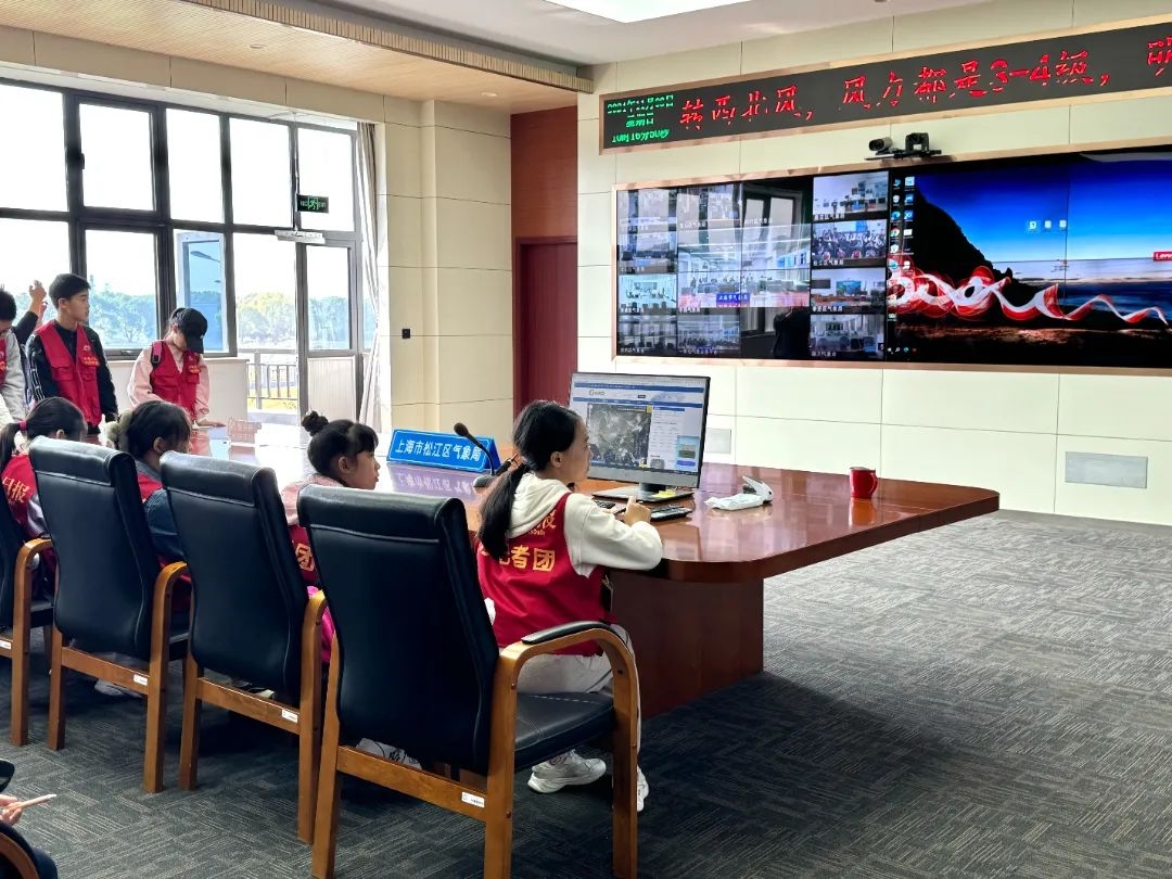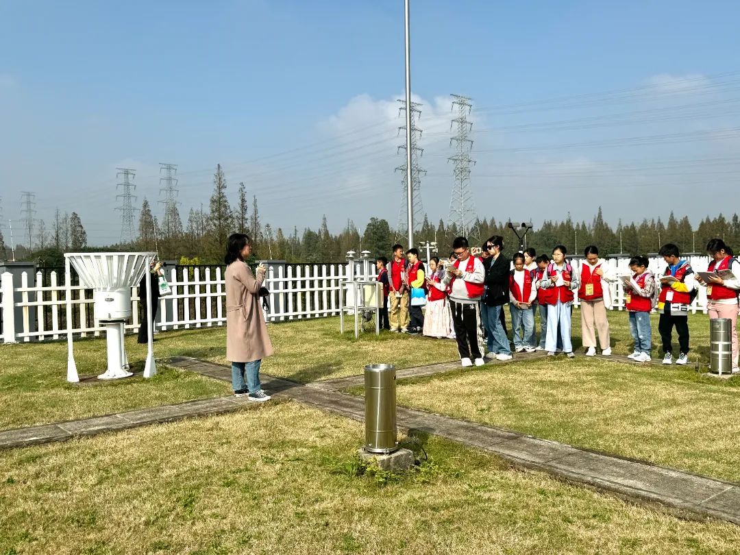 高如铁塔的风向风速传感器、形如漏斗的称重式雨量传感器……研学首站,孩子们来到了松江区气象局的地基观测站,各形各色的气象检测设备率先吸引了同学们的注意。“大风预警分为几级?”“雨量、气温等该如何观测?”围绕着这些在日常生活中不常见的观测仪器,不少同学纷纷举手发问。“在这里,我们拥有降水现象观测仪、双翻斗雨量传感器、地温触感器等设备,通过收集探测所得数据,并根据预报人员综合分析,来得出我们每天所能看到的天气预报。”工作人员一边详细介绍各种仪器作用,一边耐心回答孩子们提出的一个个问题。