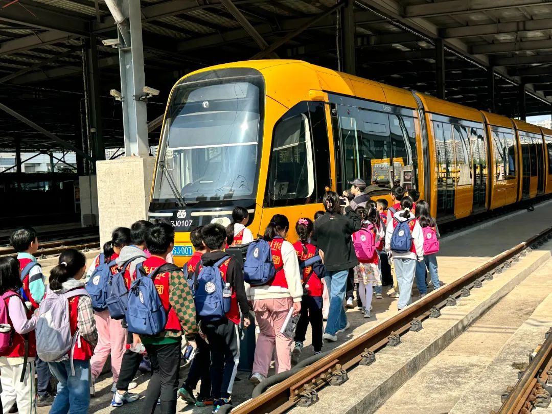 当天,孩子们还走进了有轨电车基地。“这是我们‘地上’的地铁,同时也是我们公共交通的一种新选择。”在工作人员的介绍讲解下,孩子们依次走入车辆检修库、车厢内部以及运行指挥中心,探索有轨电车的运行奥秘。