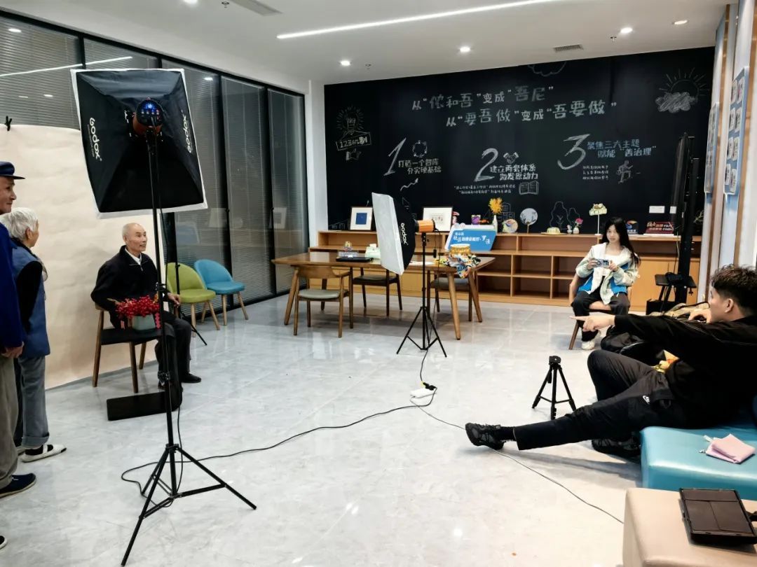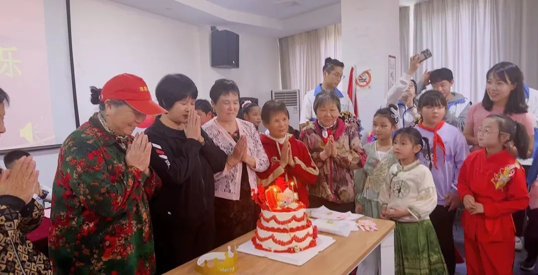 随着相机咔嚓声的响起,寿星老人们欢聚一堂,摄影师逐一为他们捕捉生日的喜悦瞬间,定格下老人们满面春风的精神风采。在一片欢声笑语中,“社区小先生”和老宝贝们齐声唱起了欢快的生日快乐歌,歌声中洋溢着对彼此的深情祝福与真挚关怀,老人们满怀希望地许下了美好的心愿。“社区小先生”在家长志愿者的陪同下,将精美的蛋糕与装有照片的相框亲切地送给老人,并与老人们交谈,现场洋溢着温馨感人的氛围。