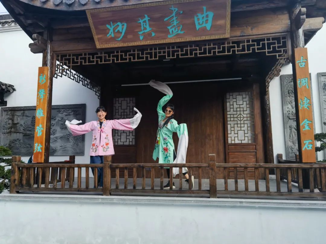 下午1时,队伍集结完毕出发。在首站江南曲圣纪念馆,不少队员在参观打卡之余还穿上戏服登上戏台舞起水袖,过了把“戏瘾”。之后大家分小组行动,依次前往未觉书屋、观鲈楼非遗工坊、程十发艺术馆、松江博物馆参观打卡,最后来到方塔园签到抽奖、领取纪念品结束任务。