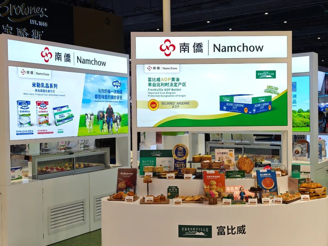 南侨今年展位以“双主体”呈现。今年南侨泰国厂再度和大陆事业携手推出首发新品,新概念和特色丰富的各类产品,和欧洲进口品在展会上“平分秋色”。此外,南侨首度在进博会推出“国际大师秀”,他们结合南侨的原料优势及满足多元场景需求,进一步展现南侨提供多元产品力的“全面解决方案”领导地位。