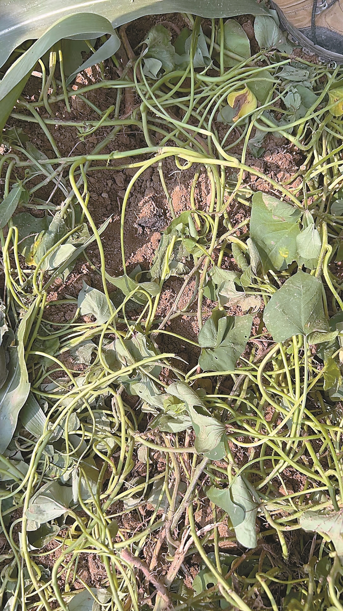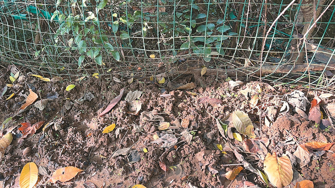 野猪侵害南京市浦口区农田留下的痕迹。 (受访者供图)