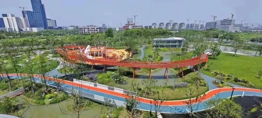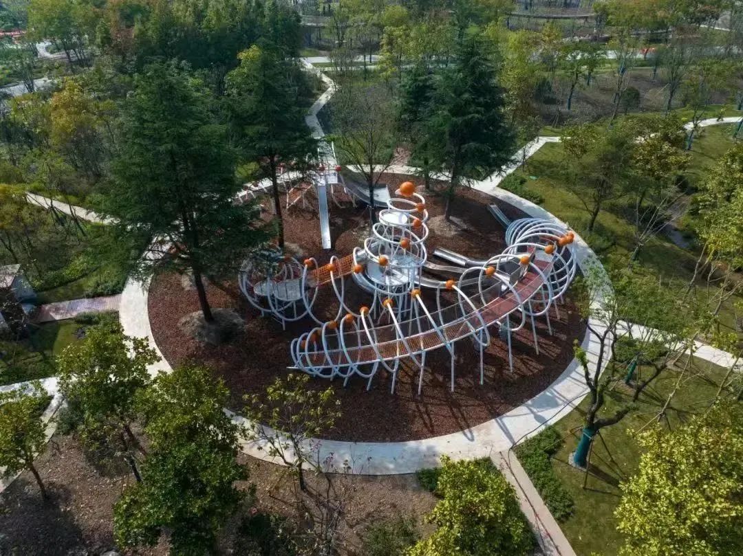 公园秉持“绿色+、运动+、儿童友好+”的设计理念,设置探趣乐园区、绿动乐园区、亲子驿站区、好奇乐园区4个特色活动区。通过多种设计巧思,多维度体现“汇生态、汇活力、汇科普、汇关怀、汇友好”的场地精神,并由此汇聚创造出多元、包容、富有亲和力的城市绿色空间,成为申城首座儿童友好型公园。