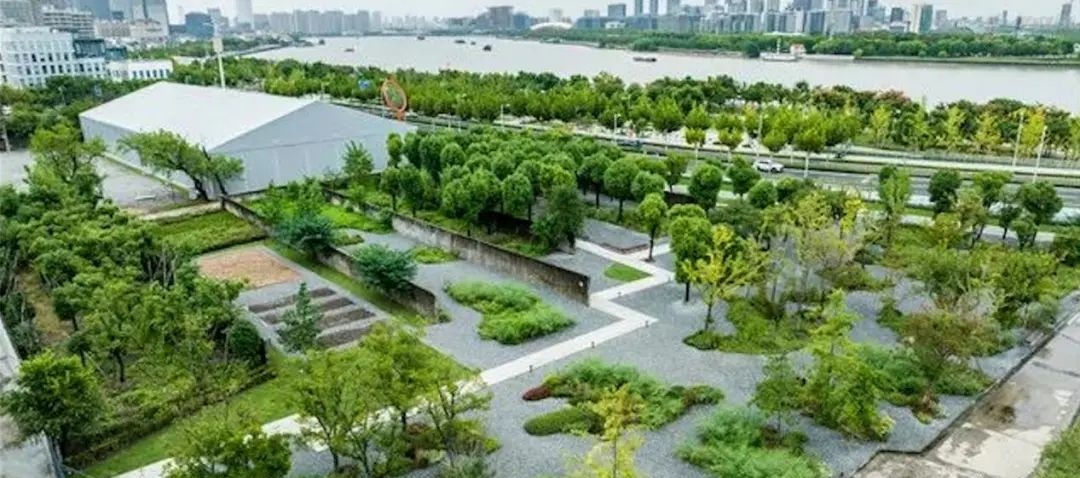 复园位于城市滨江廊道的一部分,前身是一个仓储的用地,“复园”兼具生态修复、土地复合使用之意。这是城市收储用地的临时开放改造与后工业遗产的在地化。我们清除了入侵物种,保留了自然生长的乡土物种,调整群落的自然进程,打造有梯度的生境营造,希望它呈现更荒野的一面。同时我们把它跟江南园林做了一个结合,设计引入一条东西向的曲折园路,建立场地北南两分双生格局,春申港临时绿地由此成为形式意义的“复园”。这片“共栖”场地因生态与人文的融合成为“复园”,既是后工业地景,也是江南园林。
