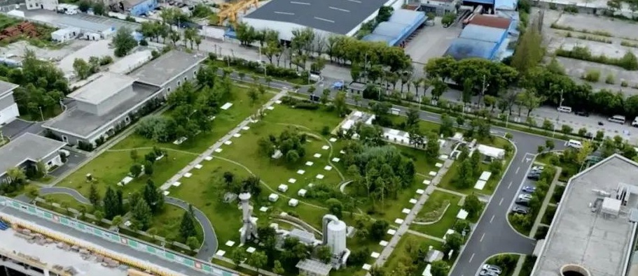 泰和污水处理厂位于宝山区杨行镇西南、蕰藻浜北岸,2017年建设,2019年投入使用,是上海首座“花园式”全地下污水处理厂。泰和污水处理厂不仅化解了传统污水处理厂的“邻避效应”,而且释放了地面空间,打造了一个兼具休憩娱乐的城市公园,是一处兼容复合功能的城市基础设施。