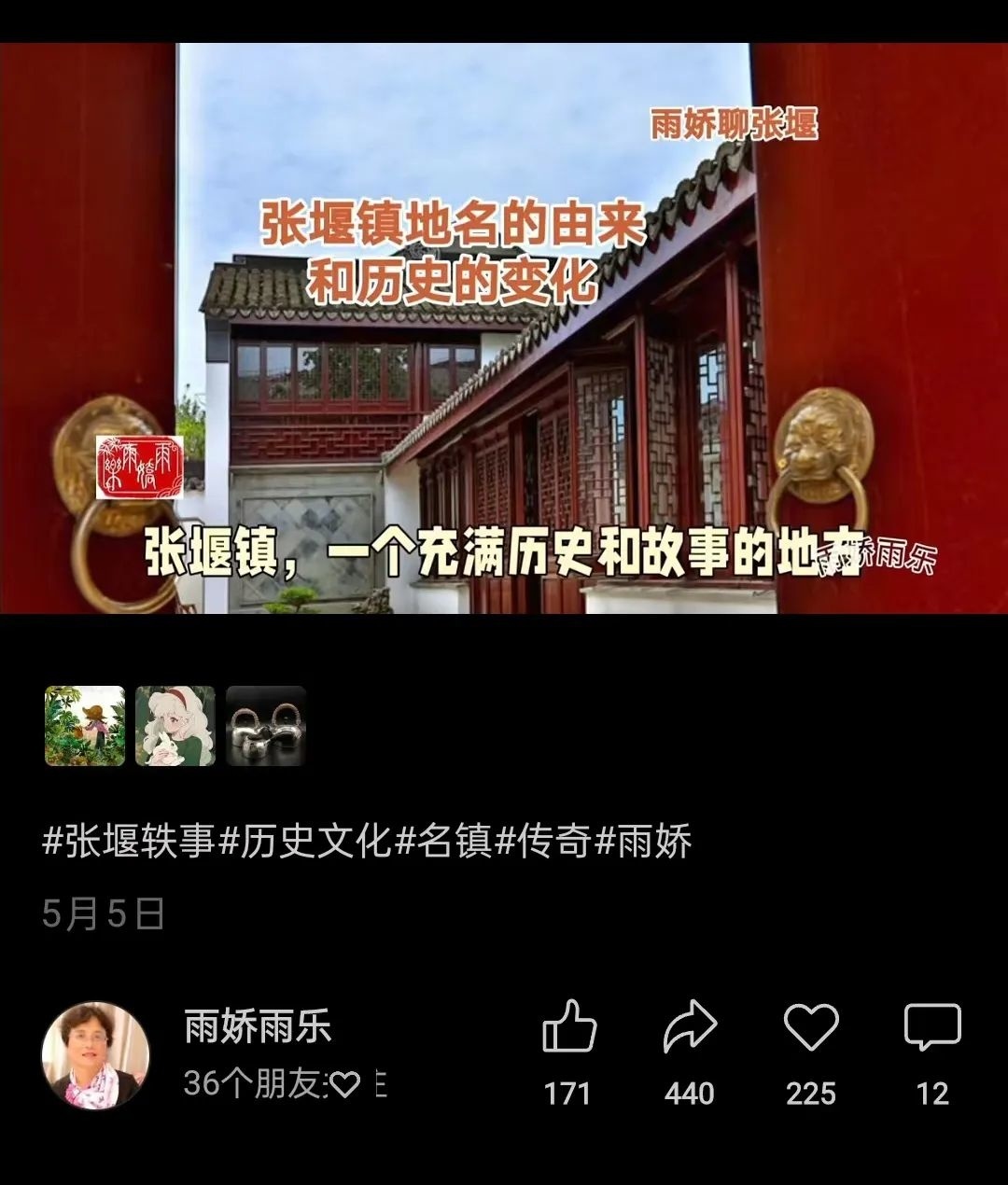 张堰镇地名由来和历史变化、张堰板桥的历史、中医陆树人的故事……最近的朋友圈时常会出现一位叫“雨娇雨乐”创作者的视频,主要分享一些张堰、金山卫和石化地区鲜为人知的历史人文老故事。视频中呈现珍贵的历史照片和视频资料,极具观赏性。 很多网友“回到”过去,大家纷纷评论说,“从视频里知道了不少张堰镇的历史故事,看来要了解张堰需要用很多时间”“离开老家张堰四十年,使我回忆起小时候的情形……” 好奇心驱使,记者联系到了这些视频的创作者“雨娇雨乐”,原以为是位中年人,惊讶的发现竟是位年近古稀的阿婆。“雨娇雨乐”真名叫周黛园,1957年出生,退休前是张堰小学的老师。“雨娇雨乐”是寓教于乐的谐音,是周黛园的教学理念,从刚开始接触网络时就一直沿用至今。 周黛园表示,首次接触到视频剪辑是在一次老年人技能培训课上,当时觉得非常有意思,初学后于2021年9月在视频号剪辑并发布了一篇自己中秋朗诵的视频,获得了许多朋友的点赞。这是她第一次自娱自乐的尝试,后来一段时间就断更了。直到2024年2月,周黛园通过抖音及视频号持续发布有关张堰以及金山文史的短视频作品。 据了解,周黛园从小生活在张堰“南湖头”,在2021年时,周黛园建立了“南湖头”老邻居群,并组织了“聊话题”活动。群内围绕南湖头的各种人、事、物、厂、店、站展开,包括“南湖头名称”“老车站”“轧米厂”等,无所不聊。 通过这些话题搜集,周黛园深刻认识到张堰作为历史悠久的古镇,蕴藏着大量民间故事和传说,亟待挖掘和整理。通过“南湖头”群,周黛园积累了不少资料,这也成为后来的视频创作素材。 在选取素材时,周黛园主要考虑三方面:内容要有持续性、要贴近生活、要围绕大家熟悉的人或事。周黛园通过张堰镇另一位文史爱好者黄建平先生的《张堰轶事》一书,选取内容后重新梳理,进行二次创作。 她的账号陆续开设了雨娇聊张堰、雨娇聊金山、雨娇闲聊等版块。由于先前有当语文老师和在《新张堰报》做编辑的经验,她对文字、图片编辑有一定的经验,但在手机剪辑、发布视频时,仍遇到一些困难。她带着问题向年轻人、社区学校老师求助,并通过看教学视频慢慢摸索,逐渐掌握剪辑技巧。如今,她的抖音账号发布261个作品,共获赞3.8万;视频号也已经发布了182条内容。 在周黛园的视频下时常会收到许多新老朋友的留言,那些离开张堰很久的居民都表示出极大的兴趣,甚至主动提供故事、家谱、画册、书籍等线索。“有很多人关注张堰历史,我感到欣慰,也希望网友们多多提供素材,一起宣传张堰镇。” 谈及下阶段创作计划,周黛园表示,还原历史事件最困难的是一些照片和视频资料的收集,怕有谬误,误导大众,还需谨慎对待。 记者:王佩永 通讯员:沈婷 编辑:干钰琼
