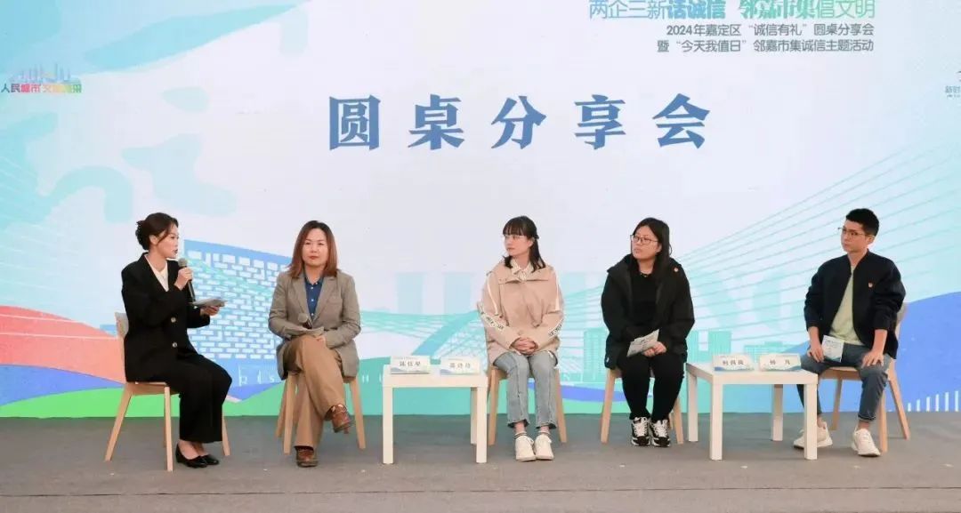 11月5日,“‘两企三新’话诚信 邻嘉市集倡文明”2024年嘉定区“诚信有礼”圆桌分享会暨“今天我值日”邻嘉市集诚信主题活动在菊园新区新时代文明实践分中心举行。此次活动聚焦树立诚实守信价值观,旨在通过多方参与,共同推动社会信用体系建设,提升城市文明水平。