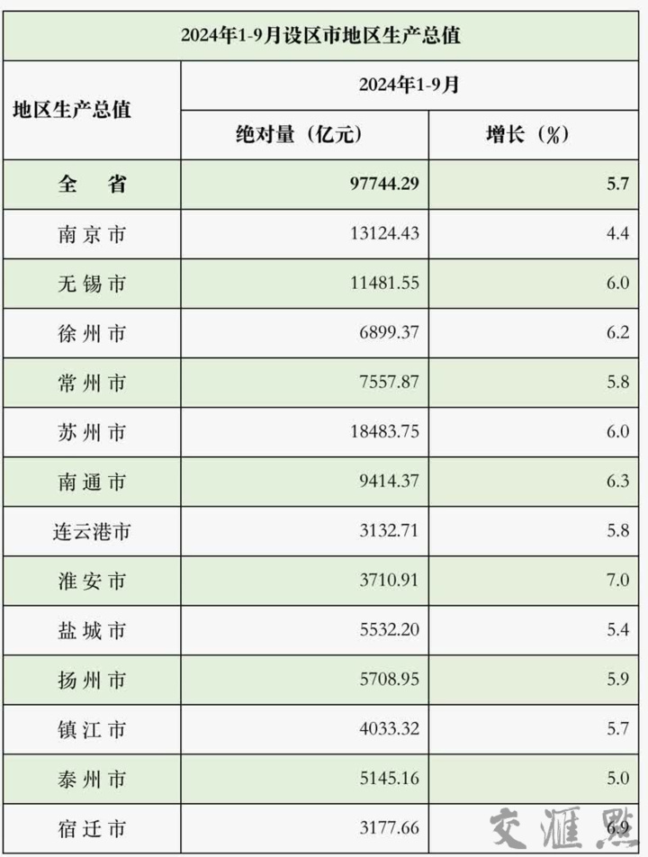 交汇点讯 11月6日,新华日报·交汇点记者从江苏省统计局获悉今年前三季度13个设区市地区生产总值(GDP)数据。从全省角度来看,经济持续展现稳健增长的态势,全省GDP总量达到97744.29亿元,同比增长5.7%,这一数据不仅彰显了江苏经济的强大韧性,也反映出各地政府在推动经济发展方面的积极作为。
