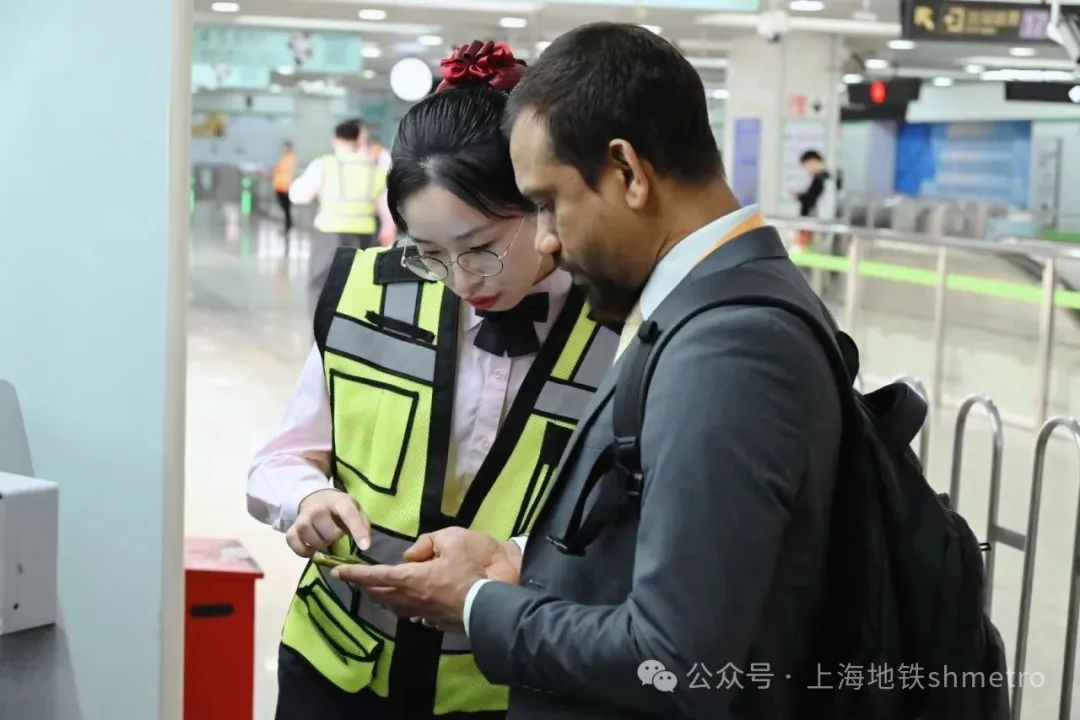 强指引,通行更顺畅:车站迎来中外乘客,工作人员、党员志愿者在站厅、站台、自动扶梯、出入口等车站关键部位引导乘客出站前往国家会展中心,解答乘客疑问,帮助顺畅出行。此次进博会期间,17号线国家会展中心站16号口外设置了身份验证点,经身份验证通过后直接达到国展中心北广场。车站工作人员在现场做好指引,帮助乘客快速找到通行路径。