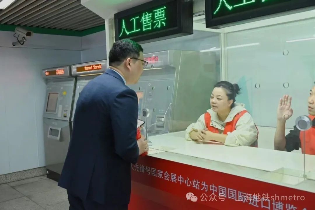 灵活变,提升出行体验:晚高峰进站时段,车站运营模式调整为4(免安检)、5、9 号口“单向进站”,8号口“单向出站”模式。针对进博会期间出现的观展客流叠加通勤客流的情况,2号线在国家会展中心站增设人工应急售票点,大大提升了乘客购票效率,减少排队等待时间。