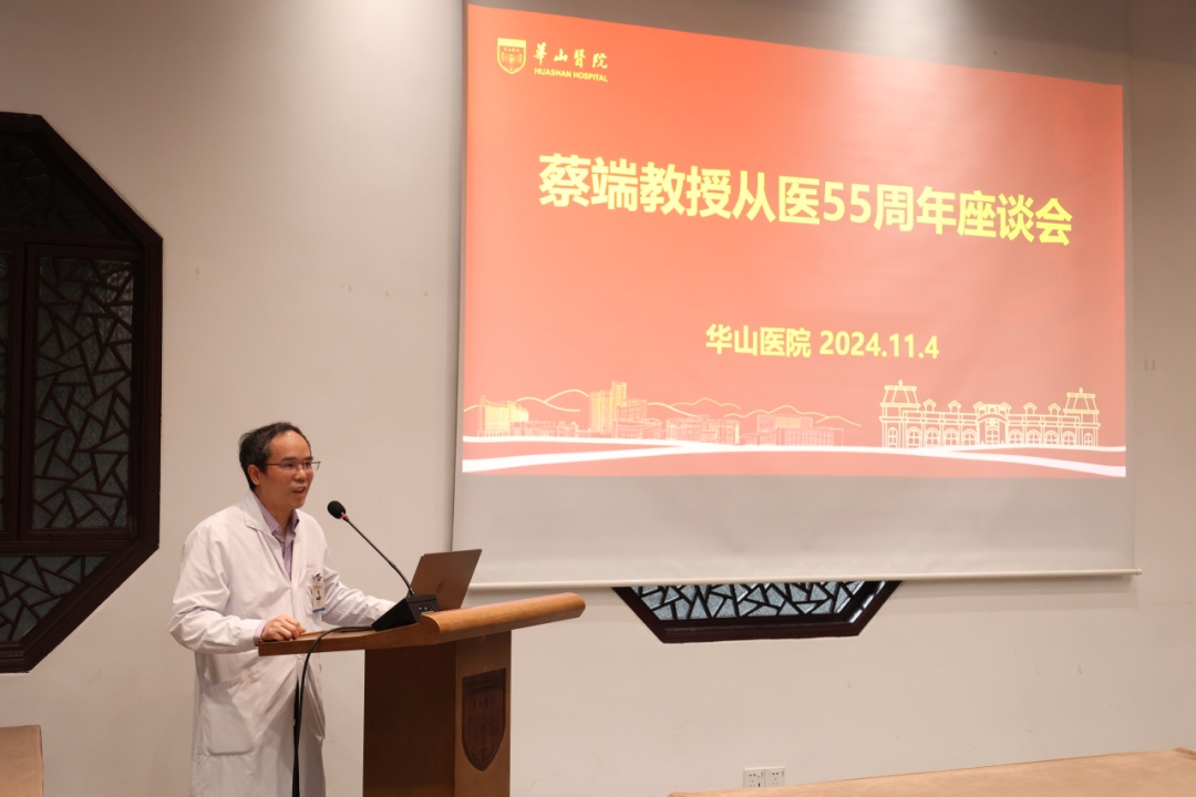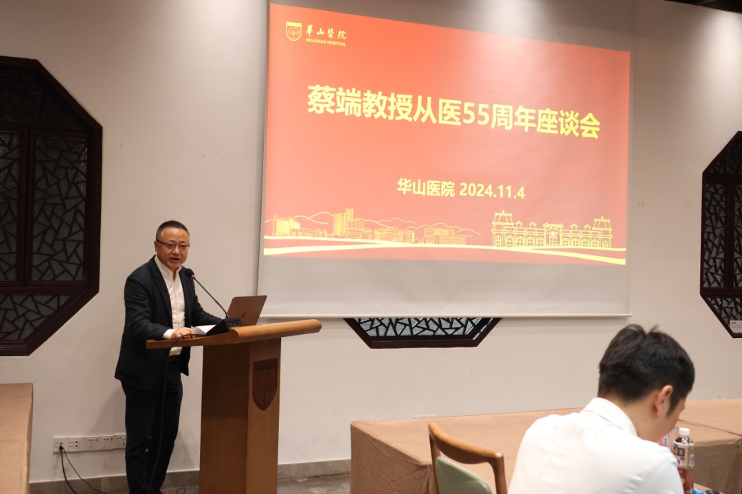 11月4日下午,华山花园大厅人头攒动、其乐融融,“福绵蔡泽,端寿安康——蔡端教授从医五十五周年”座谈会在此隆重举行。新老三代外科人齐聚一堂,共同庆祝蔡端教授八十大寿暨从医五十五周年,表达对蔡教授的崇高敬意与美好祝福。外科一支部书记殷保兵主持活动。