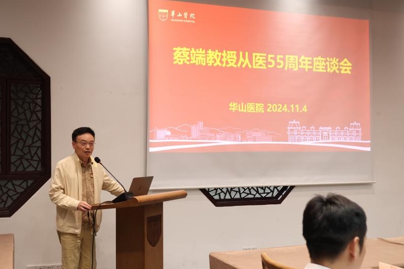 蔡端教授出身医学世家,投身医学事业已55载,曾任复旦大学上海医学院外科学系主任,复旦大学附属华山医院普外科教授、主任医师、博导。作为华山医院外科学的带头人,蔡教授数十年如一日地奋斗在临床、教学与科研一线,以渊博的学识、高尚的医德和精湛的技艺为无数患者带来新生,他严谨的治学理念和杰出的学术成就成为众人景仰的典范。