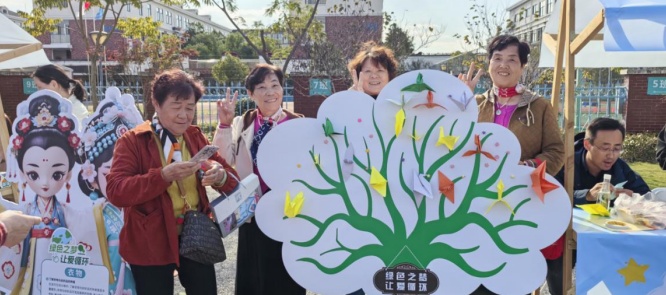 活动现场传来了阵阵欢笑声,“塑”类环节中,参与者们齐心协力挑战“叠叠高”,用积木搭建创意塔,考验着大家的手眼协调能力。在“衣”类游戏中,又用旧衣物制作沙包,回忆童年的趣味,大家还动手折叠了纸鹤和五角星,并将它们挂上象征着绿色梦想的许愿树。其他游戏如磁吸棋和套圈环节,则以环保为主题,将垃圾分类知识与趣味互动相结合。