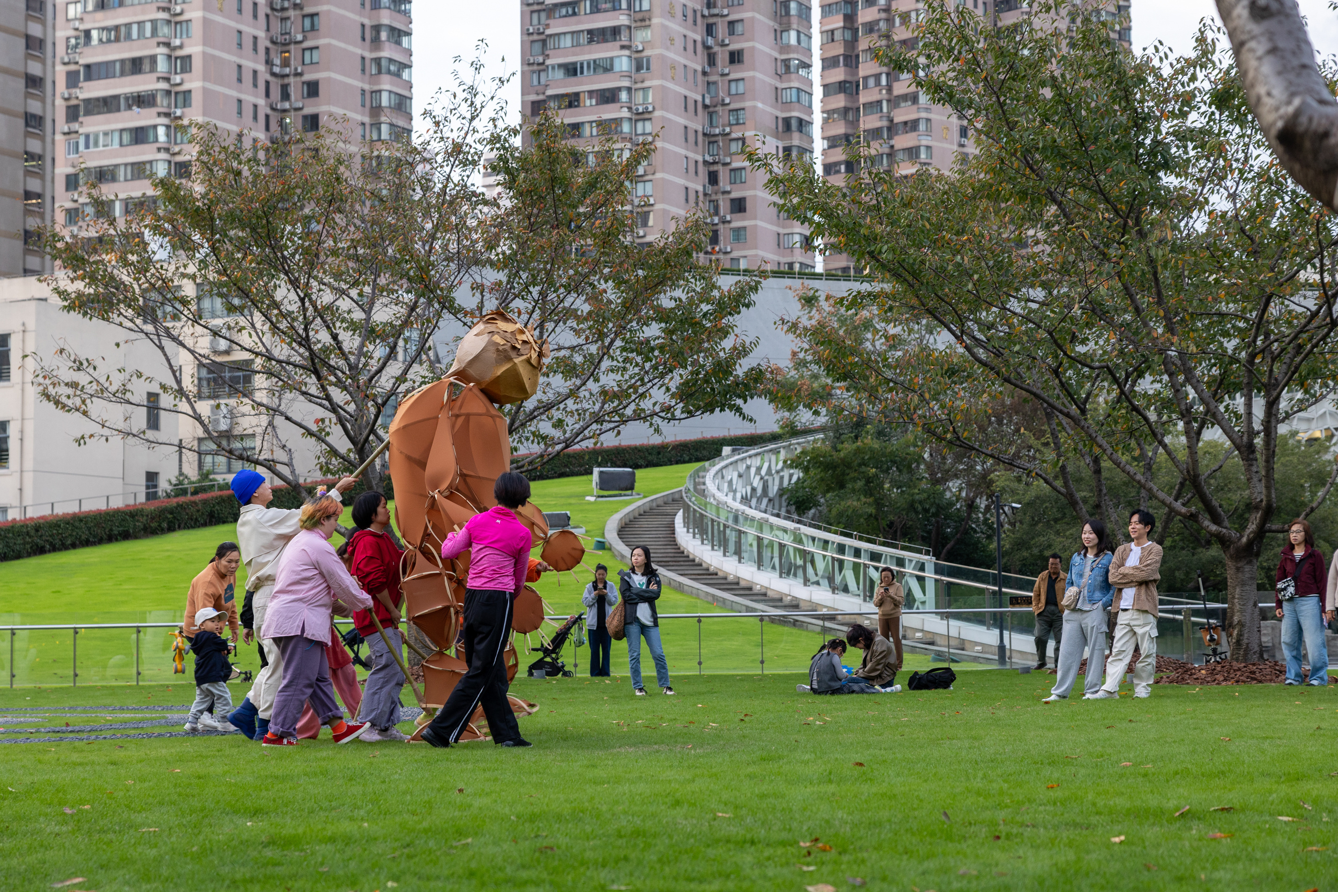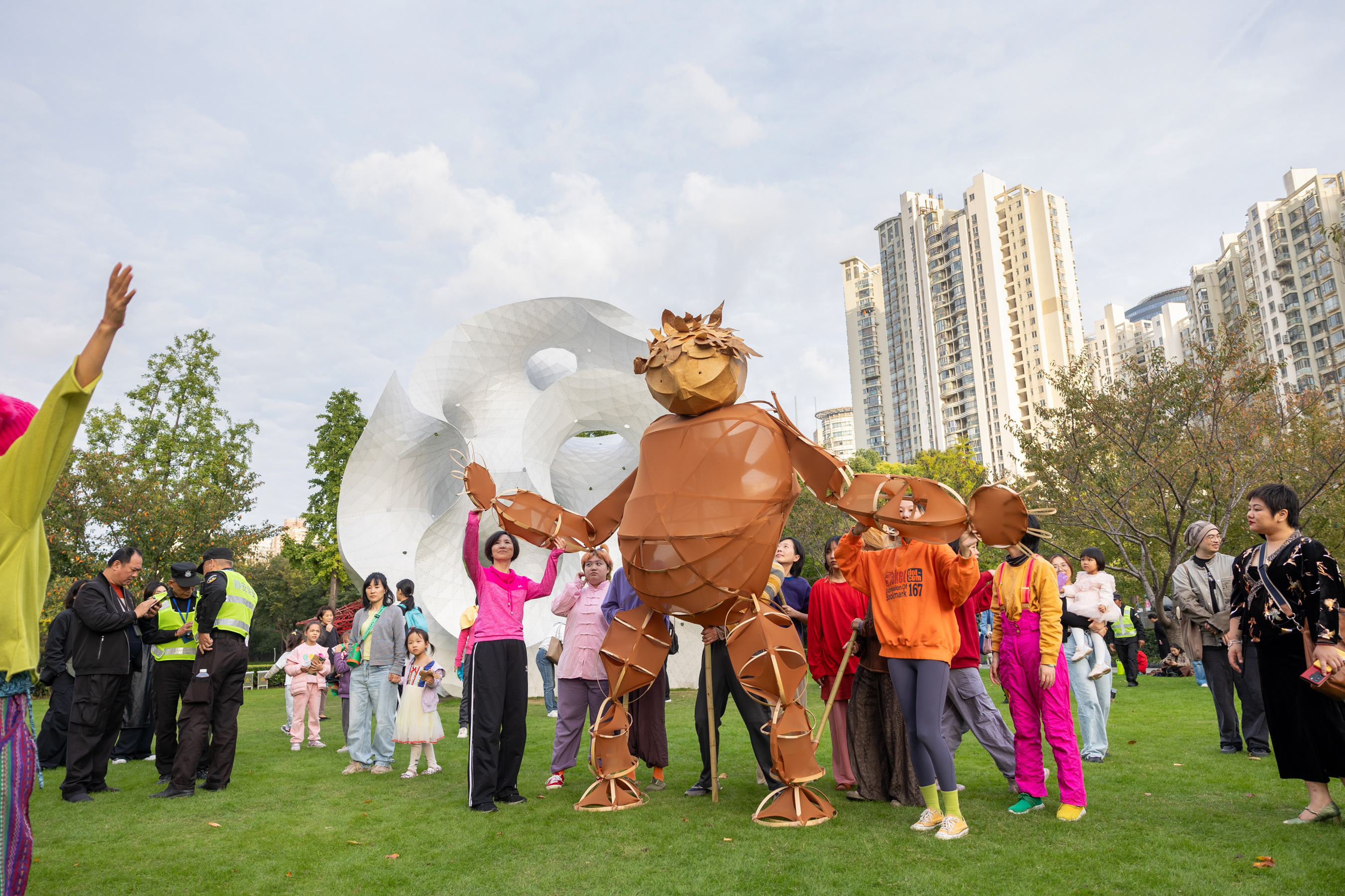 秋高气爽的周末,静安雕塑公园的草坪上又来了新的“客人”。两只生动可爱的木偶在公园里穿行,在雕塑之间“跳舞”,探索生活的诗意,倾听自然的低语……